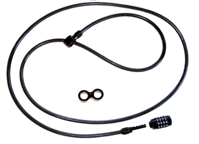 The LOCK-ALL utilizes a vinyl-coated galvanized steel cable with hardened die-cast zinc attachment multipliers that will not rust and are corrosion resistant for years of continuous trouble free use. The new customizable Barrel Lock allows you to set whatever four-digit combination you choose. The LOCK-ALL requires a very small opening (less than 3/4 in.) in order to lock your gear to any stationary object like a tree, u-bolt, truck cleat, sign post, door handle, park bench, BBQ or any other available anchor point. Then, rest assured, your valuable items will be there when you return.| Length: | 8 ft / 2.44 m |