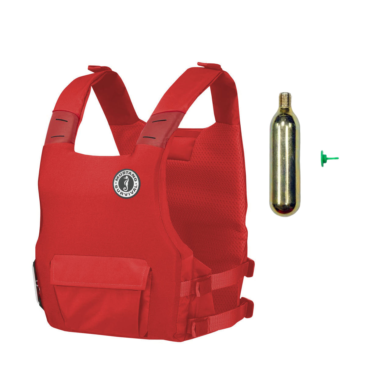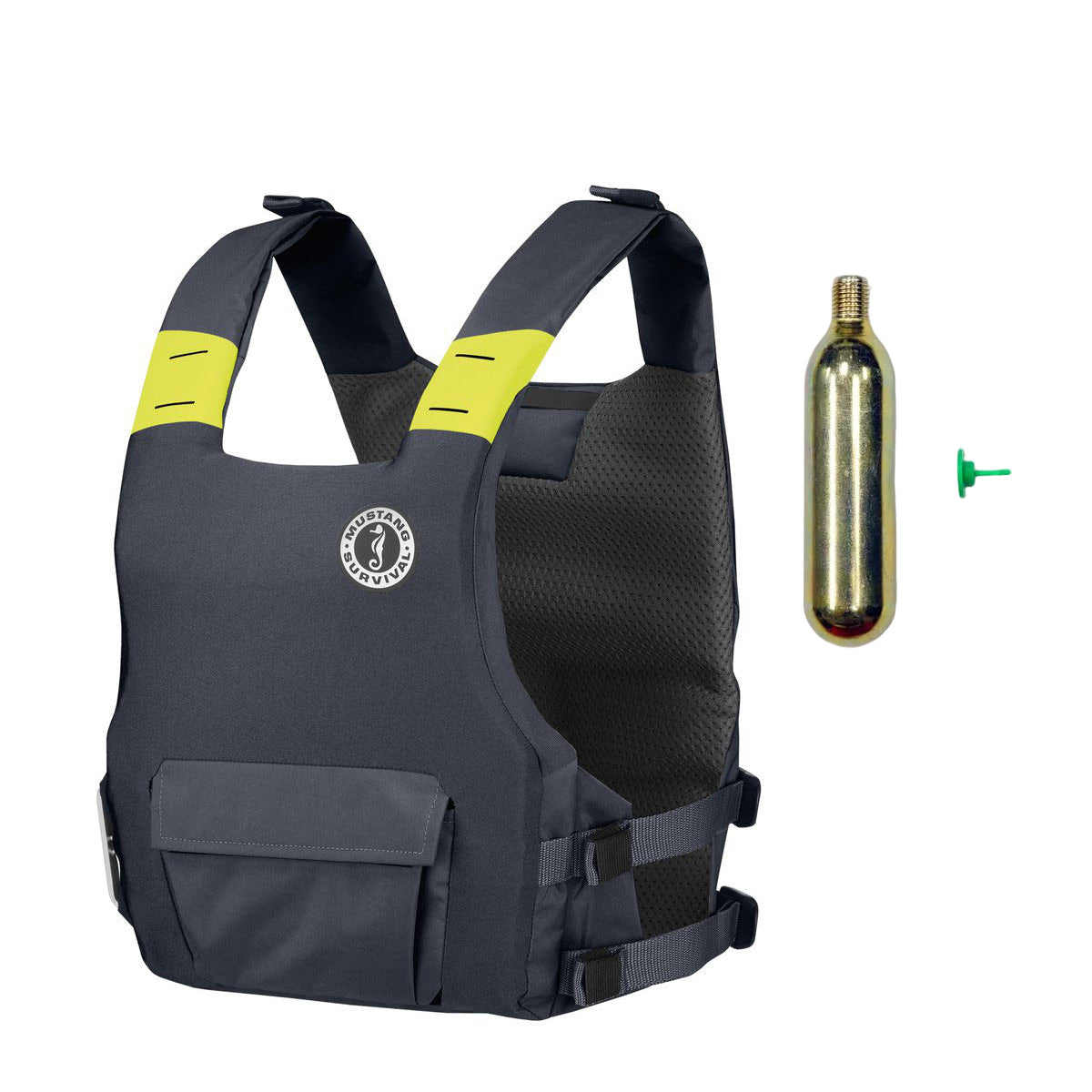 20.5 lbs of buoyancy (7.5 lbs of foam keep most bodies neutrally buoyant,13 lbs additional buoyancy available when cells inflated). Wide arm slots and a minimal silhouette allow you to keep your mobility at a high so your center of gravity stays low - getting back in your boat with ease. Soft and durable material stands up to your adventures, yet won’t chafe or rub. Simple deflation system makes transitioning between buoyancies a breeze; no repacking required - just squeeze air out of the inflation cell and rearm the CO2 cylinder, then you're done. Adjustable shoulder and waist straps create a custom fit; attachment points and front pocket allow you to bring everything you need for a successful expedition like the included C02 cylinder re-arm kit.