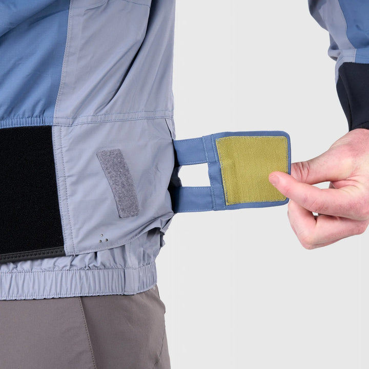 The Kenora is a men's full-features 3-season jacket constructed from our PFAS-free Exhaust Lite material. Designed to be light and breathable while offering full protection. It features a sleeve pocket and can be rolled into itself for easy storage. With an adjustable neck closure, hood and punch-through cuffs, the Kenora offers a weatherproof seal. This piece is perfect for expedition paddling or any situation that may require a weatherproof top.