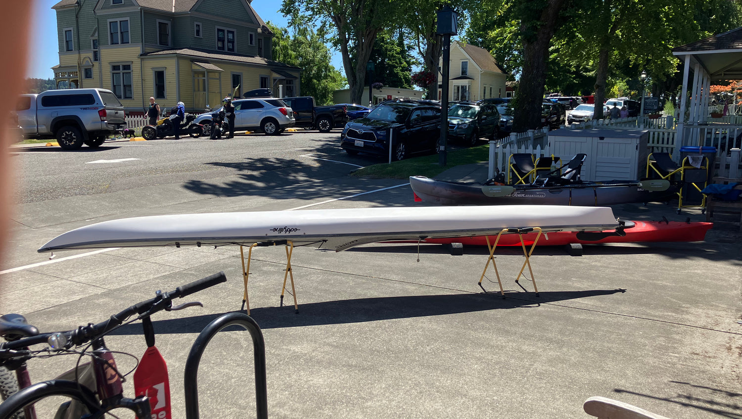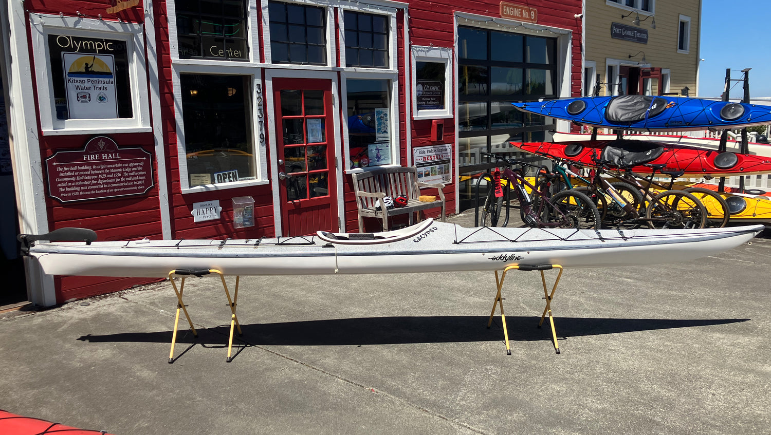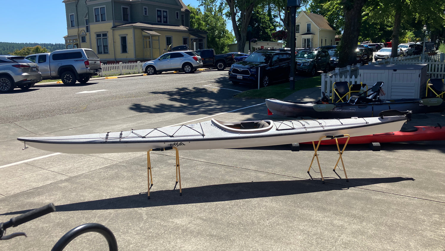 The Eddyline Calypso manifests the beauty, grace and performance of her big sister the Wind Dancer but in a more slender, delicate expression. Smaller throughout and lighter as well, Calypso gives up a little of Wind Dancers' stability in the interest a sportier ride. Far from tippy however, her moderately rockered v-hull provides a comfortable and quick response to the paddle and a lively performance in weather that will encourage you to play. Calypso is well balanced and holds her own in wind and following seas without rudder assist. She surfs delightfully and her smaller cockpit and molded thigh braces help make her easy to roll up in event of a capsize. The best simple description of the Calypso is "Sporty and Fun"!! Just enough volume for comfortable packing on one and two week trips.