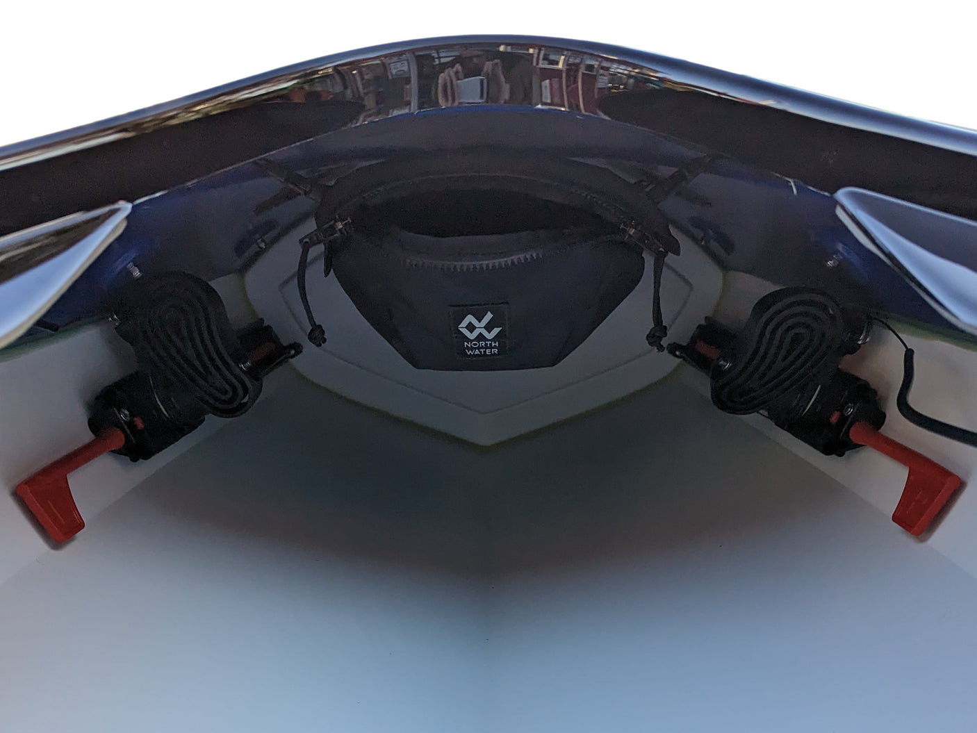 North Water's SRB Mounting System makes it quick and easy to detach and re-attach. The Underdeck Bag allows you to use the space between your knees under the deck. It is detachable and angled to fit the contours of the deck. It is easy to access and gives you a great place to store gloves, sunscreen, snacks and other daily necessities. This storage bag tucks up under the deck and provides quick access to items you may need to keep protected and accessible while on the water. Sunscreen, camera and a snack are just a quick zip away.