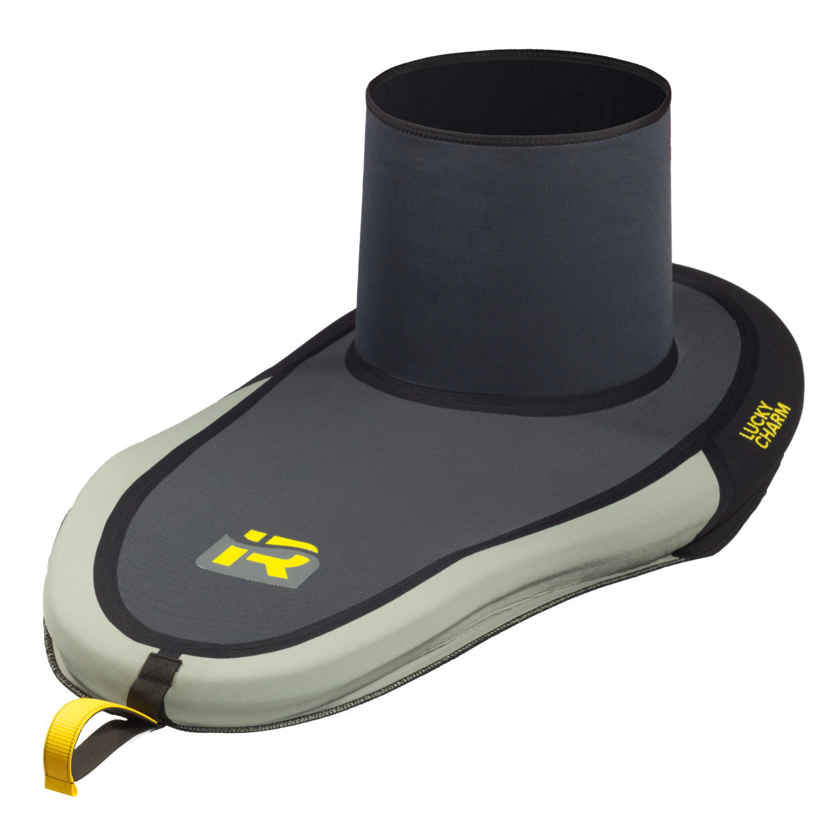 A 3mm neoprene tunnel is mated to an abrasion-resistant 4mm Supratex II deck. The front casing is reinforced with Schoeller™ Dynamic® provides extra protection around the cockpit rim. IR's tri-fin rand rubber rand profile provides a tenacious grip to prevent implosion while maintaining a dry seal. The unique rand compound we use enhances stretchability in cold conditions. A neoprene apron extends past the rand to aid in providing a dry seal. Super sticky silicone grip strips on the underside of the casing keep the skirt securely in place in heavy whitewater. Our grippy, corrugated, high-vis Eagle Talon grab handle holds its shape and prevents your hand from slipping off the end making it easy to find and pull in disorienting situations.