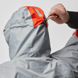 • Three adjustment points on the articulated hood provide a customized fit. Two bungee cinches at the neck and one on the back of the hood.