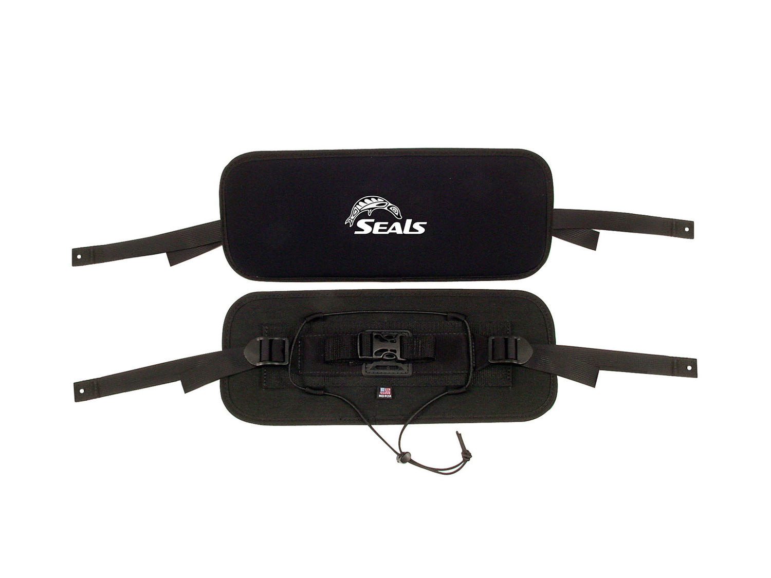 La banda trasera para kayak Seals tiene una almohadilla contorneada cubierta de neopreno con soporte estructurado disponible en tamaños pequeño (13,75" X 5") y grande (14,75" X 6"). Cuenta con una correa para pestañas accesoria y ofrece numerosas opciones de montaje.