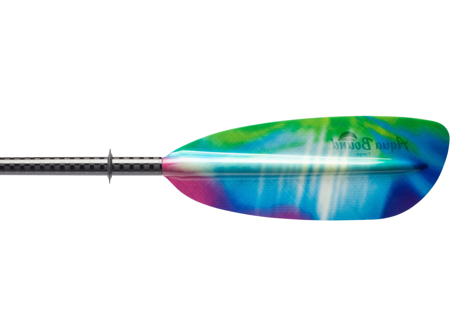 With its long and slender blades, the Aqua-Bound Tango Fiberglass touring kayak paddle is designed for low-angle paddling. Hand-crafted multi-laminate high-pressure compression molded fiberglass blades, combined with an all-carbon T-700 shaft, the Tango Fiberglass paddle has a super light swing weight yet is still strong and very durable. This Tango features the reliable and easy-to-use Posi-Lok ferrule system which clicks into position firmly and securely with a strong, corrosion-free construction, convenient dual-button release, and a feather angle adjustable in 15° increments.