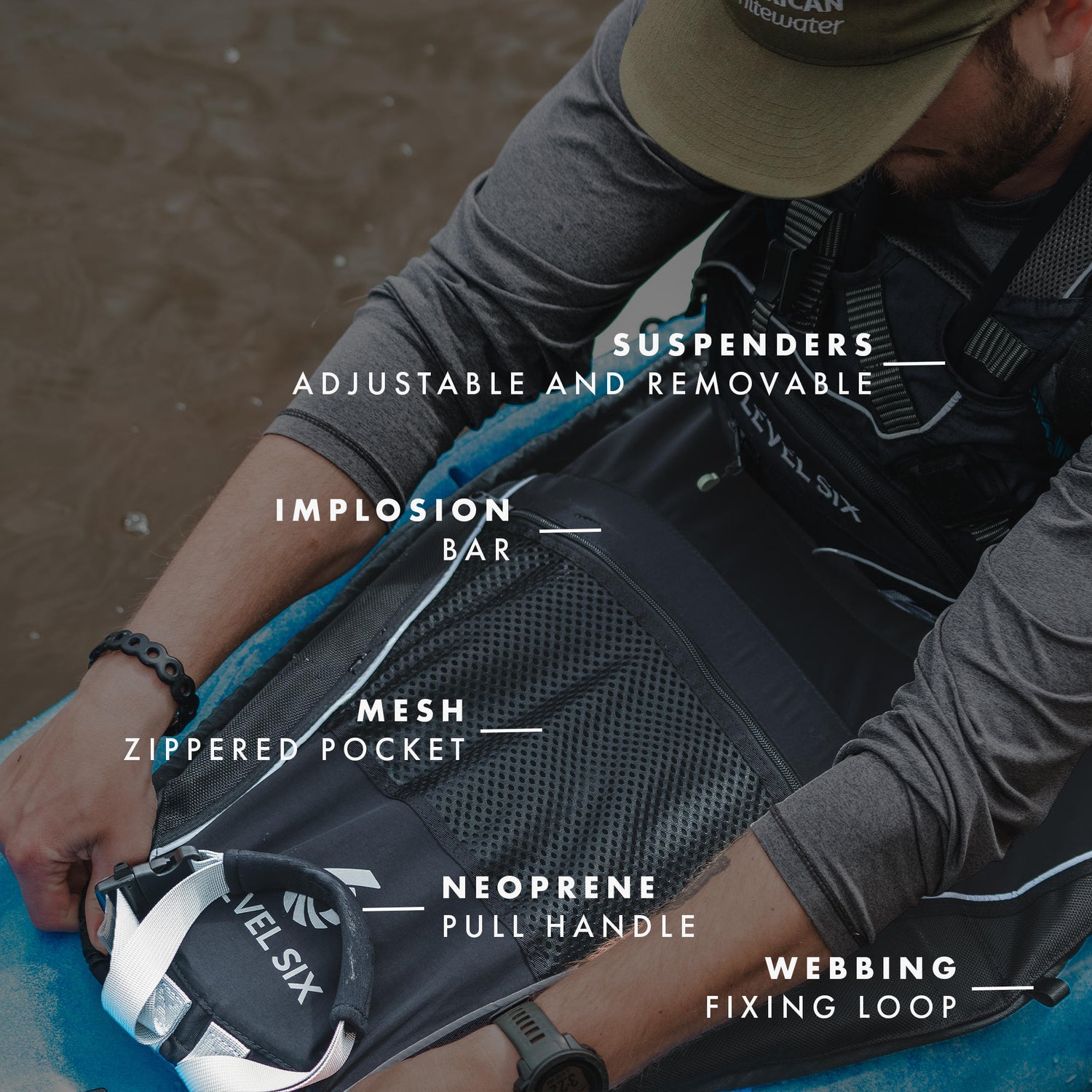 The Mariner is constructed with 3ply 100% recycled waterproof breathable nylon. This premium nylon skirt will help regulate cockpit temperature and has features ready to tackle any on-water expedition. A front mesh zippered pocket and fixed webbing loops give you easy access to snacks and/or navigation gear, and the ballistic nylon abrasion panels offer a lifetime of durability. Removable suspenders and an immersion bar help shed water and waves in rough conditions. The bungee cord is encased in Grip-Tex fabric for better rim grip, and the seams are fully taped to make a great watertight seal on various cockpits. The double neoprene waist adjustment system allows for a comfortable one-size-fits-most tunnel without having it dig into your body when tightened.