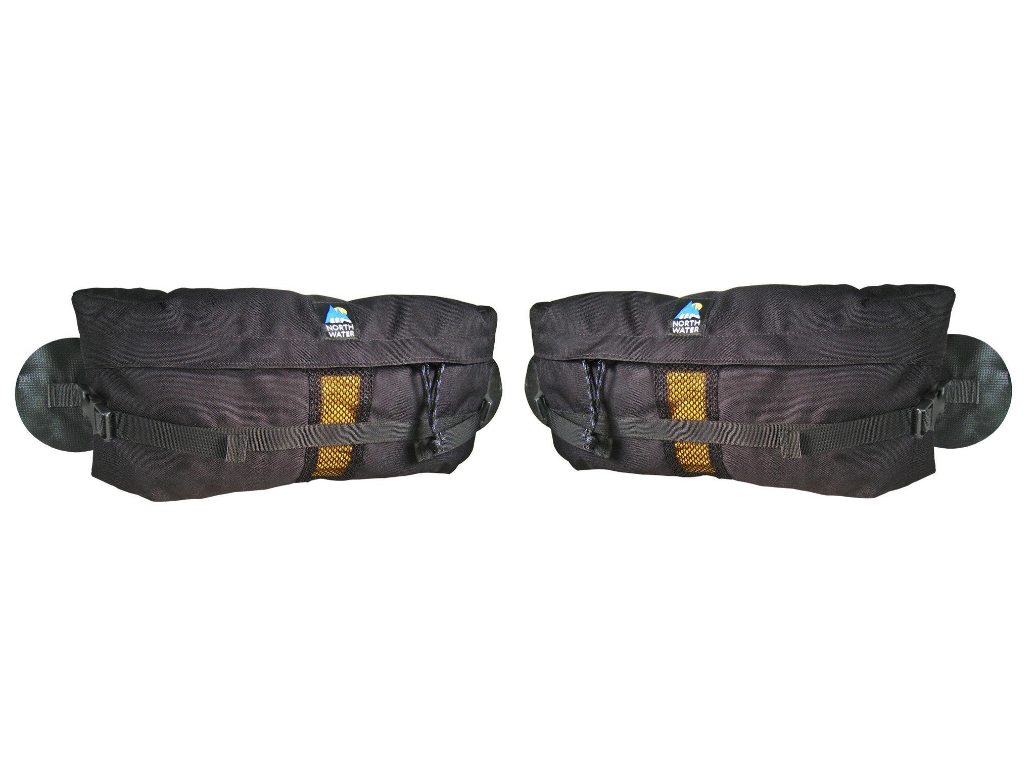 Northwater Interior Mounted Cockpit Bags are like glove compartments inside your kayak. They can be placed outside your knees to make better use of cockpit space. They have a "Pelican Scoop" zippered opening that is designed to keep the contents of the bag from falling out when opened. North Water's *SRB Mounting System® makes it easy to detach and re-attach. This unique mounting system allows the storage bag to be easily removed and reattached using a sturdy side squeeze buckle. The 2-3/4" vinyl disks adhere easily to fiberglass and composite boats using Vinyl Tec 2000 (50ADH-05). For polyethylene kayaks a bolt-on adaptation is available. They can also be attached onto rudder cables if your kayak has a rudder. They are easily removable and do not interfere with your position. They can also be used to pad out your boat for a better fit. A great place to put your survival kit and other easy to reach items. These storage bags are meant to be mounted on the inside of your boats chine.