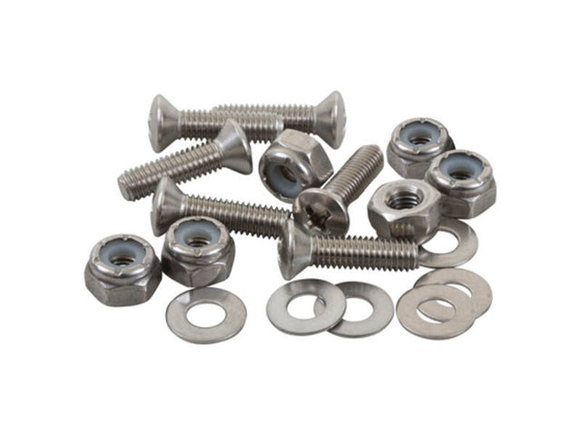 Just the hardware you need to outfit your kayak or replace aging deck fittings. Stainless steel fastener pack includes a set of six #10-32 oval head machine screws with matching nyloc nuts and washers.