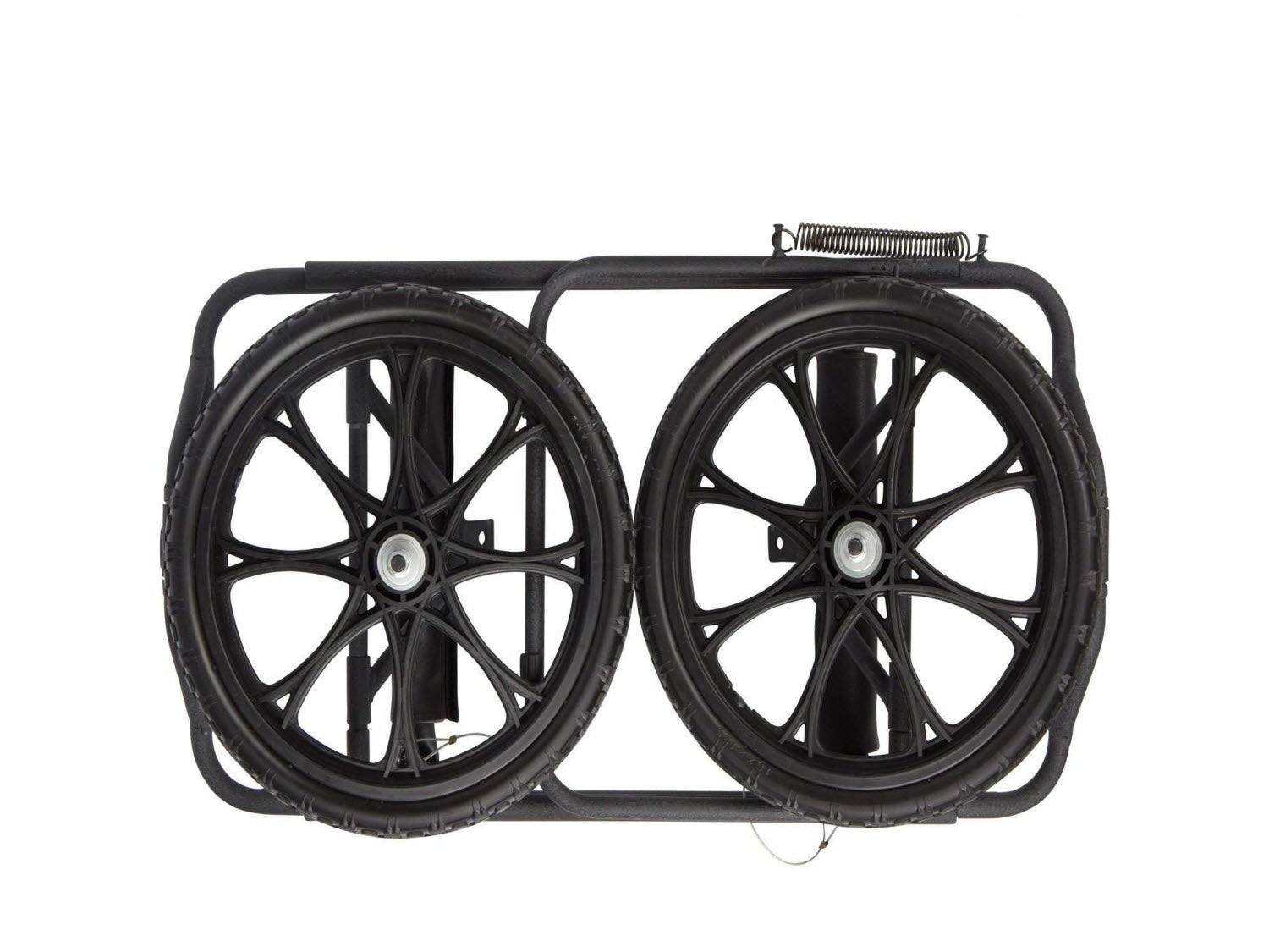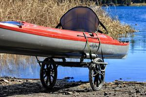 This kayak and canoe cart for all terrains is the “King of Carts”. It features oversized wheels for ground terrain clearance and rolling performance. Features a heavy-duty powder coated steel frame perfect for the largest boats, even with a fully packed cooler inside! The only “All-Terrain Workhorse and Off-Roading" cart on the market.